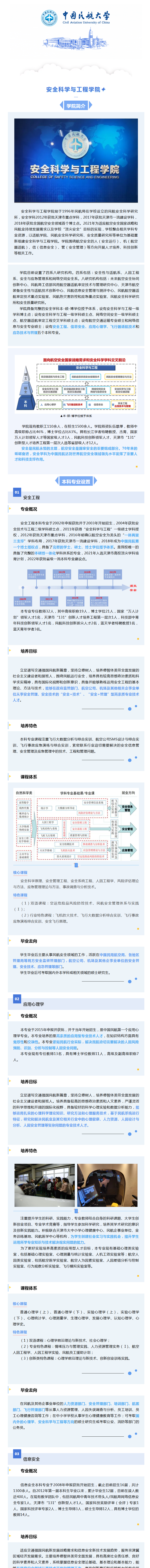 中国民航大学隶属于中国民用航空局,是一所工、管、理、经、文、法、艺等多学科协调发展的行业性大学,是中国民用航空局、天津市、教育部共建高校,是天津市“双一流”建设高校和高水平特色大学建设高校。学校坚持立德树人根本任务,落实价值塑造、能力培养、知识传授三位一体教育理念,着力培养高素质科技创新人才、专业技术人才和国际化人才。