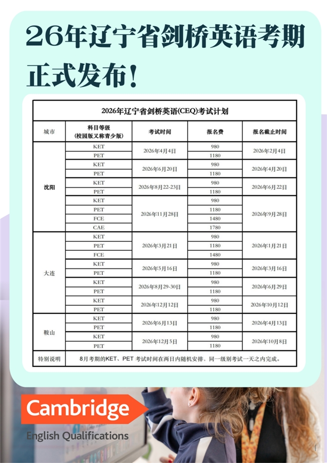 值得关注的是,剑桥英语CEQ考试打破了年龄与年级限制,无论是中小学生、高校学子,还是职场人士、终身学习者,均可根据自身需求选择对应级别参与测评。