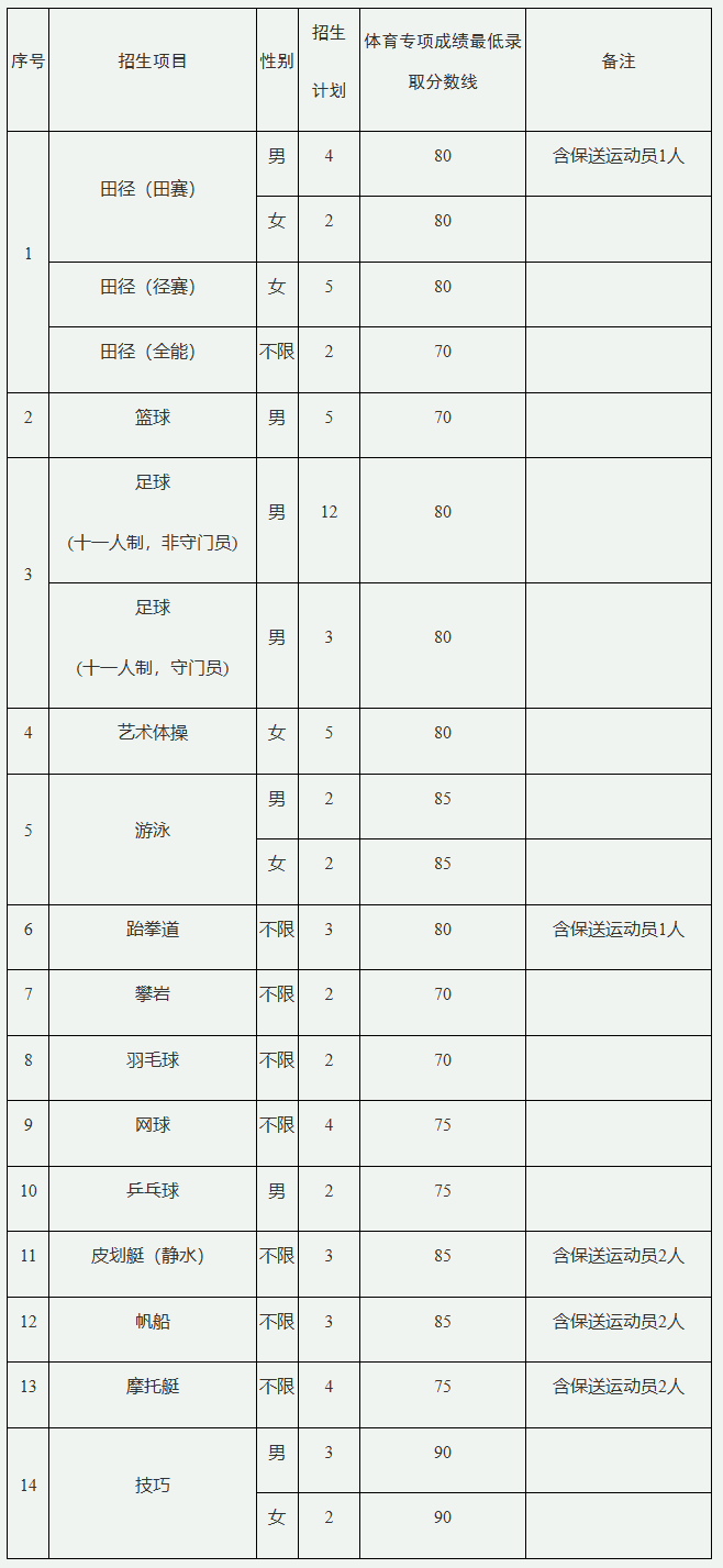 2026年我校运动训练专业分14个项目招生,总计划为70人(含保送),具体项目和招生计划人数如下: