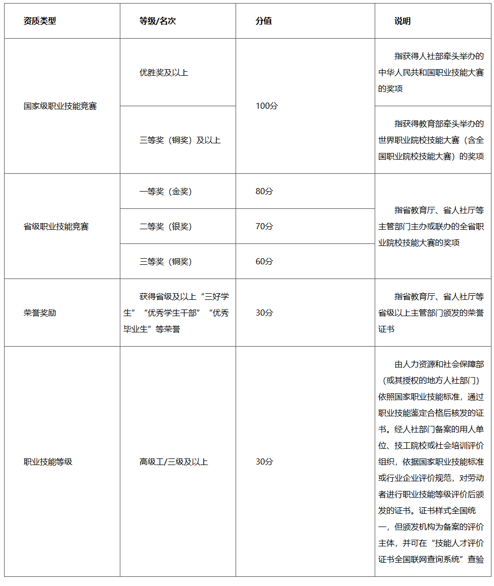 本积分依据考生申请免试资格的竞赛奖项、荣誉奖励及职业技能等级进行评定,积分可重复累加,不设上限。