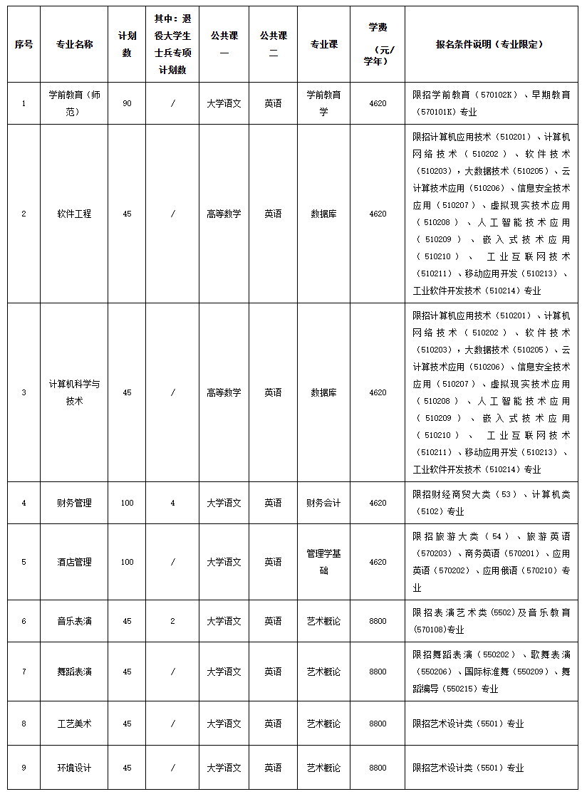 附件2:琼台师范学院专升本招生专业介绍