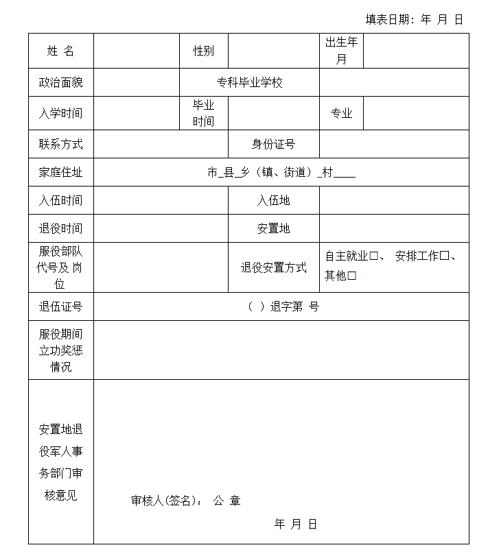 海南省退役大学生士兵报考“专升本”身份认证表