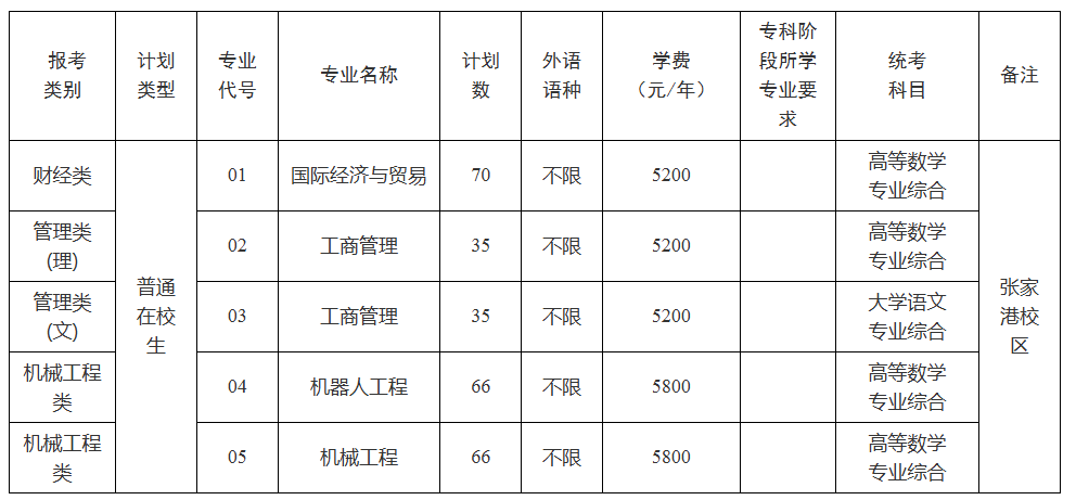江苏科技大学2026年“专转本”专业计划表