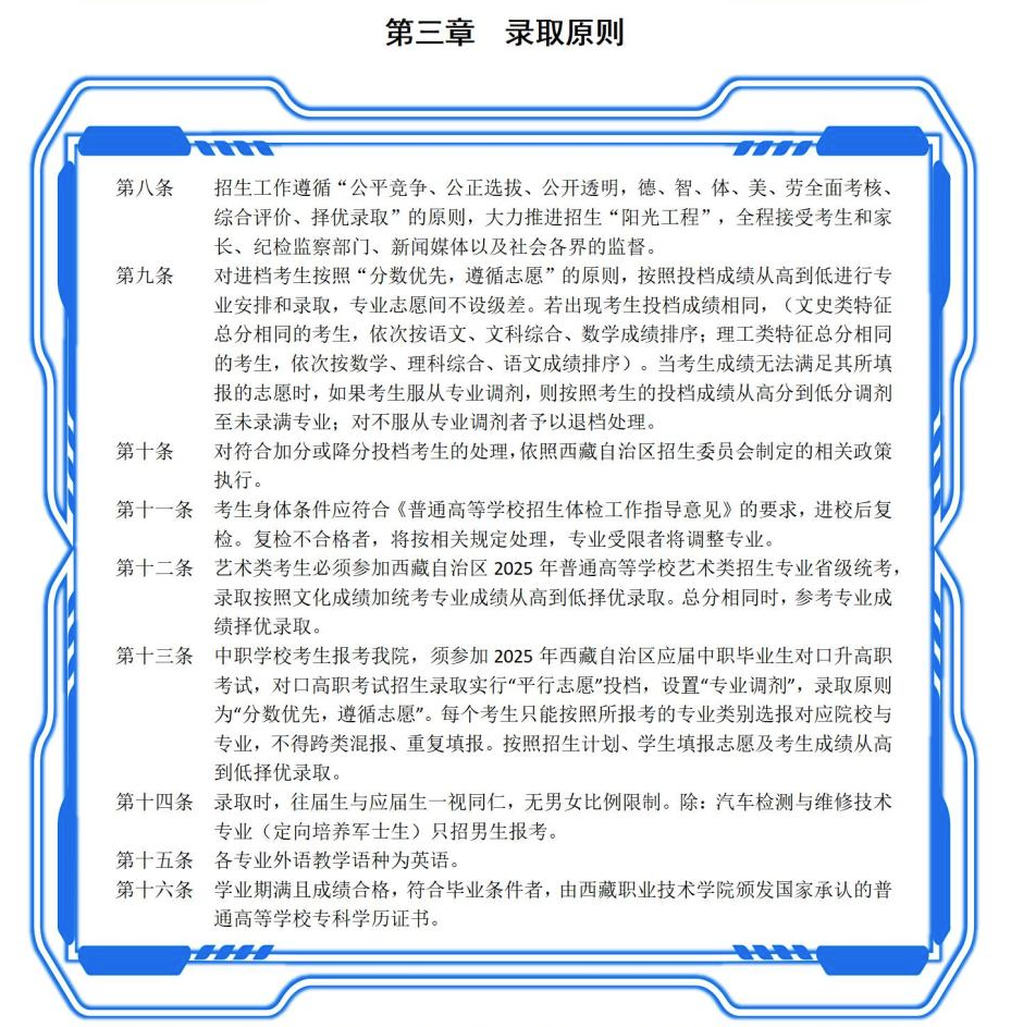 西藏职业技术学院2025年招生章程