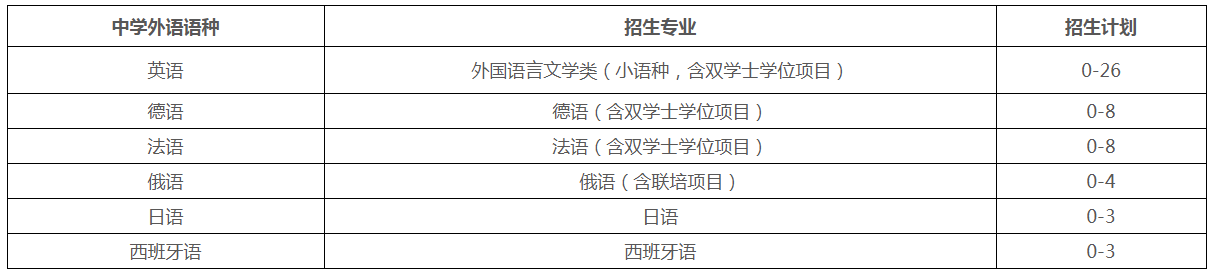 我校2026年外语类保送生招生计划不超过52人,具体招生专业及计划见下表。各语种间招生计划原则上不作调整。