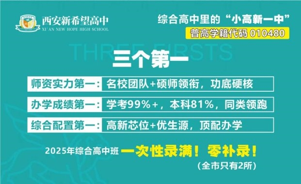 这是一所“综合高中试点学校”,学生可以通过普高学籍参加高考,并与长安一中名校合作,师资力量强、升学率高,据最新数据,2025年本科上线率达78%,参考学费:40000元/年。