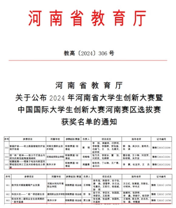 近日,河南省教育厅公布2024年河南省大学生创新大赛获奖名单(教高〔2024〕306号),我校人工智能学院参赛项目《铝翼能潮锂离子电池与新型双零铝箔坯料工艺技术的绿色动力革新》...